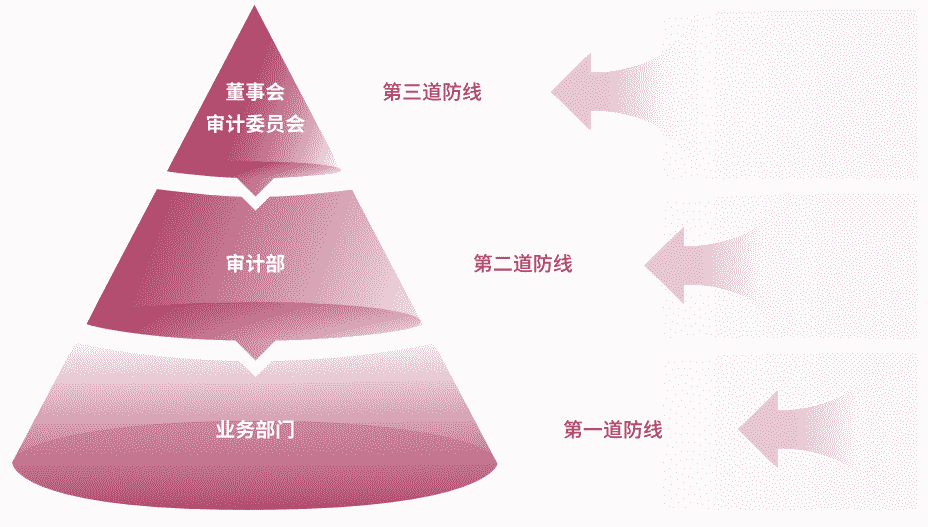 为有效防范贿赂与贪污等商业道德风险,,,公司建立了由“董事会审计委员会、、、审计部、、业务部门”组成的三道防线,,全面落实公司商业道德合规工作,,,,并确保《商业道德行为准则》的有效执行。。公司审计部在董事会审计委员会的指导下定期评估、、、审查公司的合规运营情况及准则的履行情况,,,并对公司及所有子公司开展商业道德行为审计。。。公司保证商业道德行为准则审计工作每三年覆盖公司及其所有控股子公司的全部业务范围。。。
