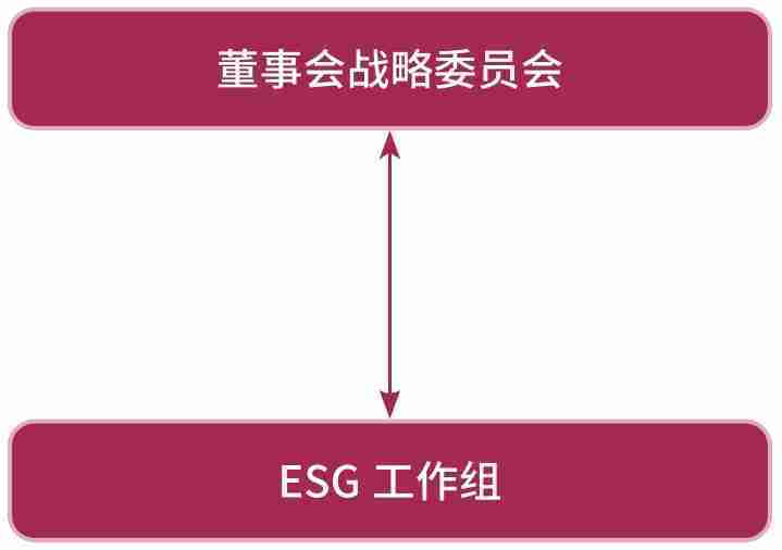 公司根据《董事会议事规则》与《董事会战略委员会工作规则》的要求,,,明确规定董事会战略委员会的职责包括监督检查公司ESG工作组的执行情况并适时提出指导意见,,,,审阅公司ESG报告、、、ESG相关制度及其他与ESG相关的重大事项,,对公司ESG治理进行研究并向董事会提供决策咨询建议(包括ESG治理愿景、、、目标、、、、政策等)。。公司ESG工作组主要负责制定ESG工作执行计划,,,,协调ESG风险与机遇的评估管理。。。