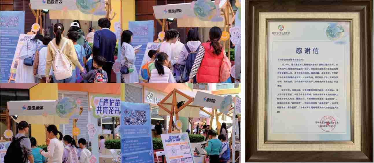 2024年11月,,,公司受邀参加由深圳市互联网信息办公室、、深圳市妇女联合会、、、深圳市文明办联合主办的“E路护苗 共育花开”——2024深圳未成年人网络共护行动游园会,,,并作为企业代表发言,,,,介绍未成年人保护体系及相关公益实践,,,,获得深圳市网信办的认可。。。