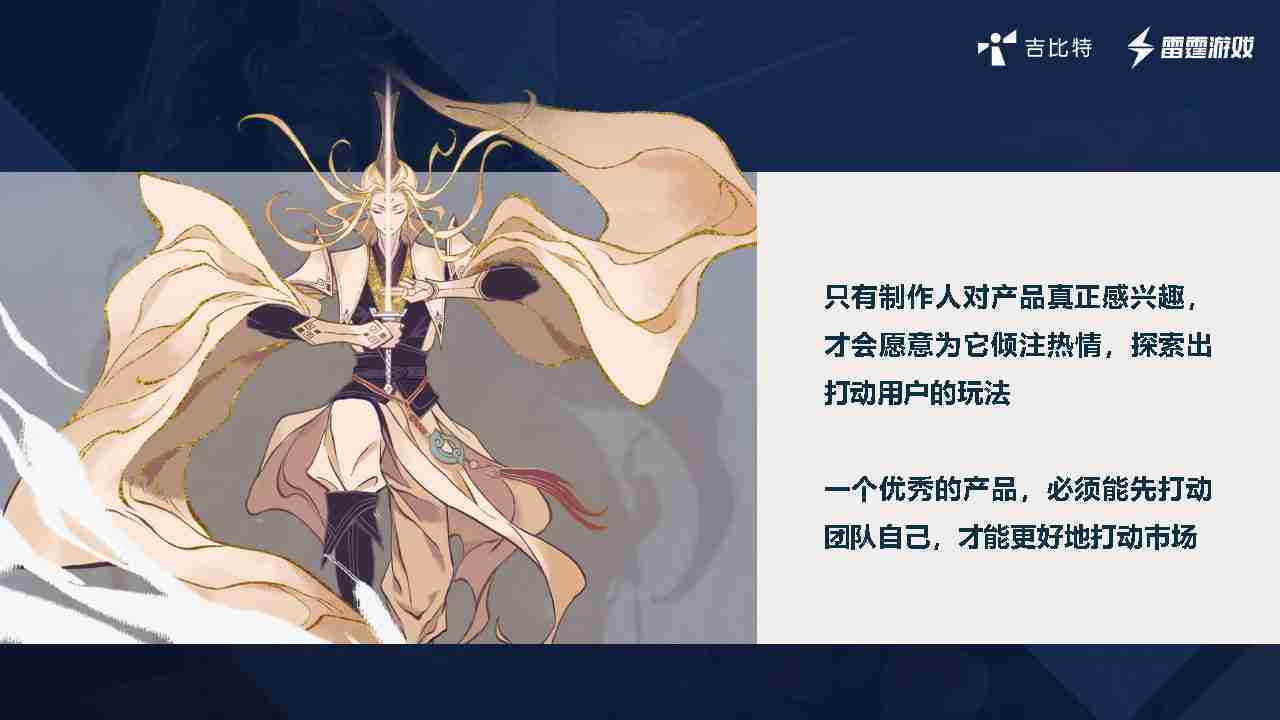 以《一念逍遥》为例,,2018年公司创始人萌生想做修仙题材的放置游戏的想法,,,,于是找了两位同事讨论了一下产品的概念,,这两位现在是项目的制作人,,,花了三周的时间把原型做出来,,并且确定最初的战斗原型,,,,以及整个养成的节奏。。。。通过几次版本迭代验证后,,,也确定后面的内容应该怎么拓展,,最终在一年左右时间这个项目上线了。。。。当时我们内部有同事看到《⼀念逍遥》上线,,认为品质还不够完美,,,,但是整体营收还不错。。就在想那是不是以后我们都做这样的产品??但实际这是错误的认知,,,,我们内部不是这么看的。。游戏在那个时间点上市,,,,因为有些市场的考量和营销点的考虑,,,,并不是希望所有项目都是这样。。。。如果它有更好的契机,,希望它可以做得更大、、、更好,,,希望在内核玩法确定之后,,,,外围投入可以越大越好,,,所以后面的几个项目是往这个思路上做。。。。