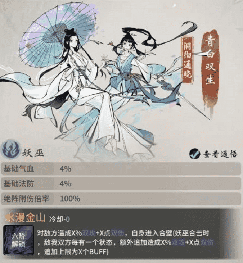 西湖踏春,,未曾想竟卷入到青白蛇故事中。。。青蛇与白蛇本是修道有成的小妖,,,,两人在西湖边上开了间医馆,,,济世救民,,不料沾惹人世因果,,,遭高僧误解。。白蛇被镇压于雷峰塔下,,侥幸逃脱的青蛇则在三界奔波,,,只为早日寻得解救白蛇之法。。。如今千年已过,,,,高僧云游四海,,,雷峰塔封印松动,,而青蛇亦寻得强力古宝,,,意欲趁此机会解救出姐姐……若仙友有幸与青白双生结识,,,,即可习得其绝技·水漫金山,,对敌方造成双攻伤害,,于修炼大有助益。。
