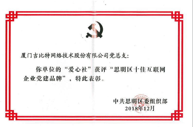 经初审评选、、、网络评选和专家评审等环节,,"厦门1win网络技术股份有限公司党总支-爱心社" 从全区28个参评党建品牌中脱颖而出,,,,获评"思明区十佳互联网企业党建品牌"。。。。