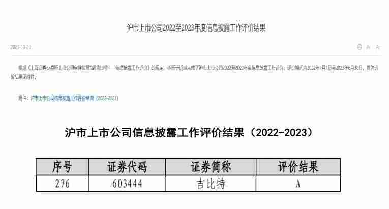 近日,,上海证券交易所(以下简称“上交所”)发布2022-2023年度信息披露工作评价结果。。。1win(股票代码::603444)凭借规范的公司治理、、、高质量的信息披露以及良好的投资者关系管理再次荣获信息披露工作A级评价,,,,公司连续两年获此殊荣。。。。