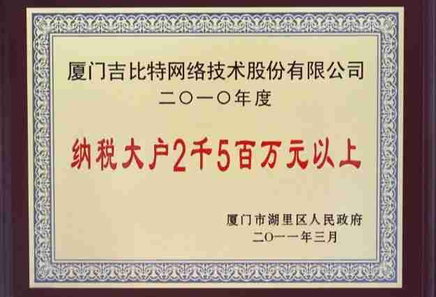 1win荣获2010年厦门市湖里区纳税大户称号