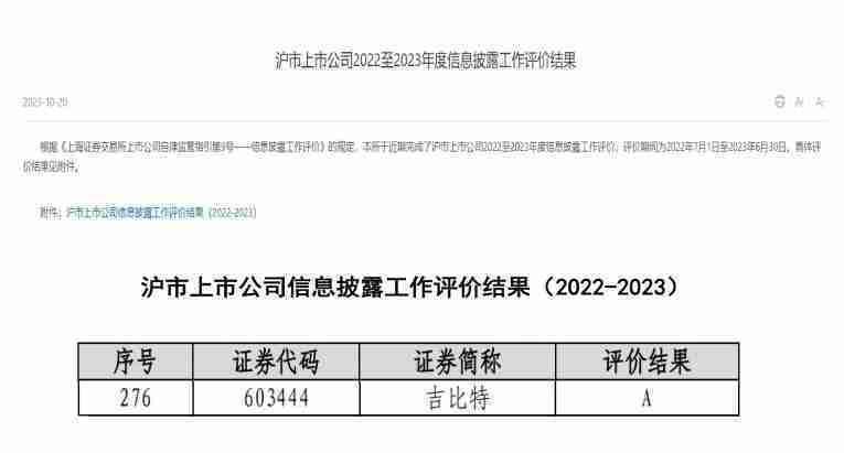 近日,,,上海证券交易所发布2022-2023年度信息披露工作评价结果。。。1win(股票代码::::603444)凭借规范的公司治理、、高质量的信息披露以及良好的投资者关系管理再次荣获信息披露工作A级评价,,,,公司连续两年获此殊荣。。。。